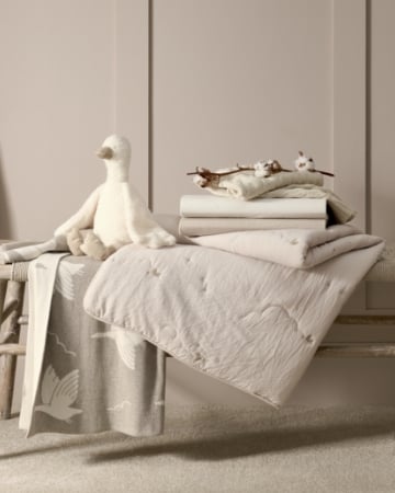 swaddle wraps if they are an infant. Our collection includes baby pillows, muslin cloths and quilts, made from soft materials.