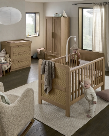 مجموعة مهد وطاولة تغيير إسنا بلون راتان، قطعتين